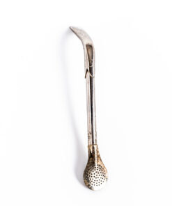 Bombilla recta confeccionada en alpaca con cuchara grande, Boquilla en alpaca con la terminacion artesanal de las puntas llamadas pico del rey. Largo 19.5 cm.