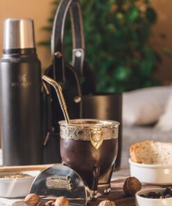 Mate camionero realizado en calabaza forrada en cuero. Virolas en alpaca o acero inoxidable. Realizado con materiales de primera calidad, calabaza seleccionada de paredes gruesas, que logran la armonía perfecta entre su excelente aspecto exterior y un interior respetable con capacidad para la cantidad ideal de yerba. Su elaboración artesanal, tallado completamente a mano, no es un mate hecho por máquinas, lo convierte en el mejor mate del país para disfrutar de tus infusiones.